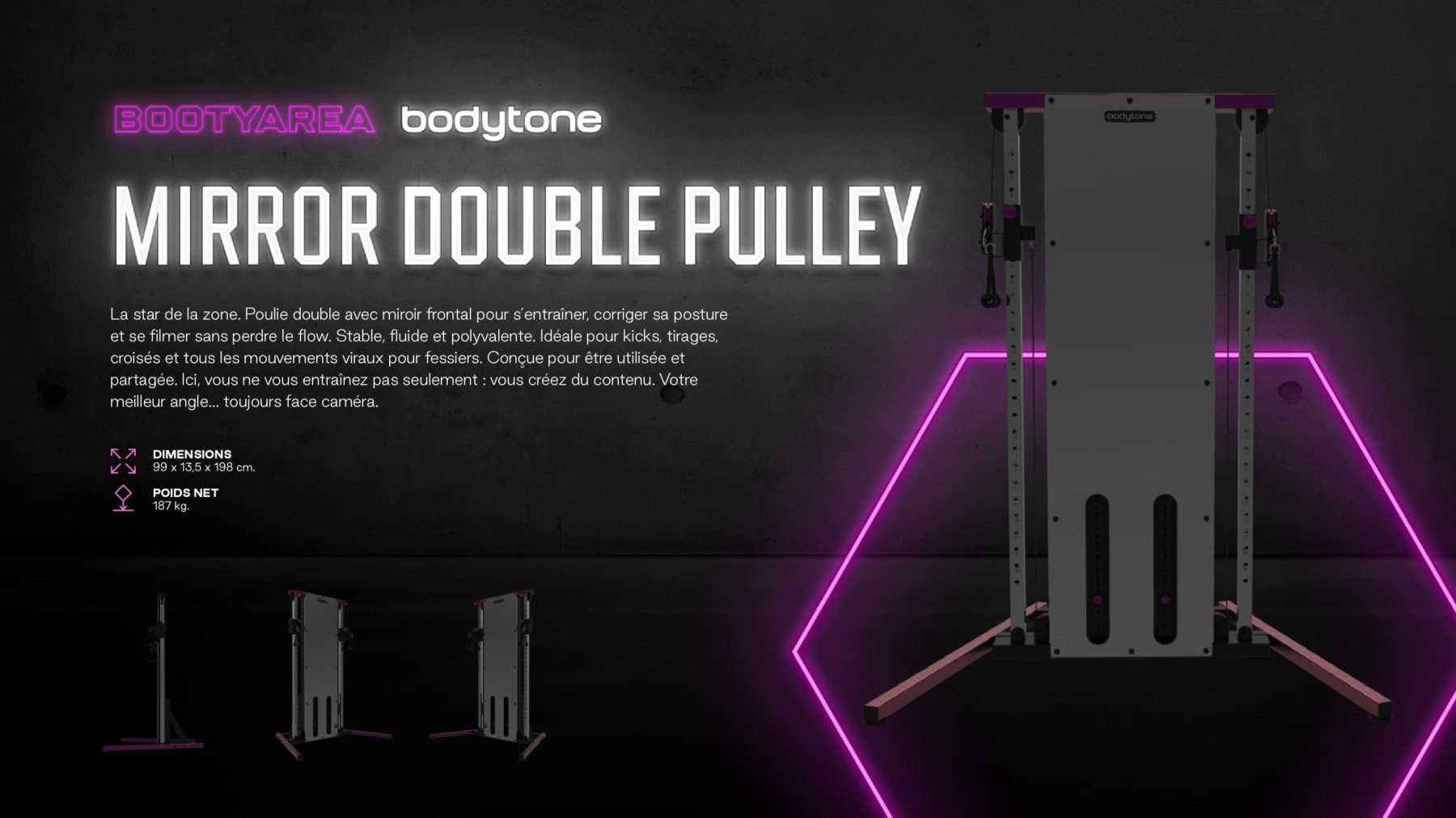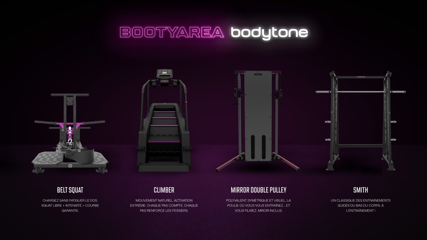 Salles premium, studios boutique et clubs souhaitant créer une zone signature orientée bas du corps,