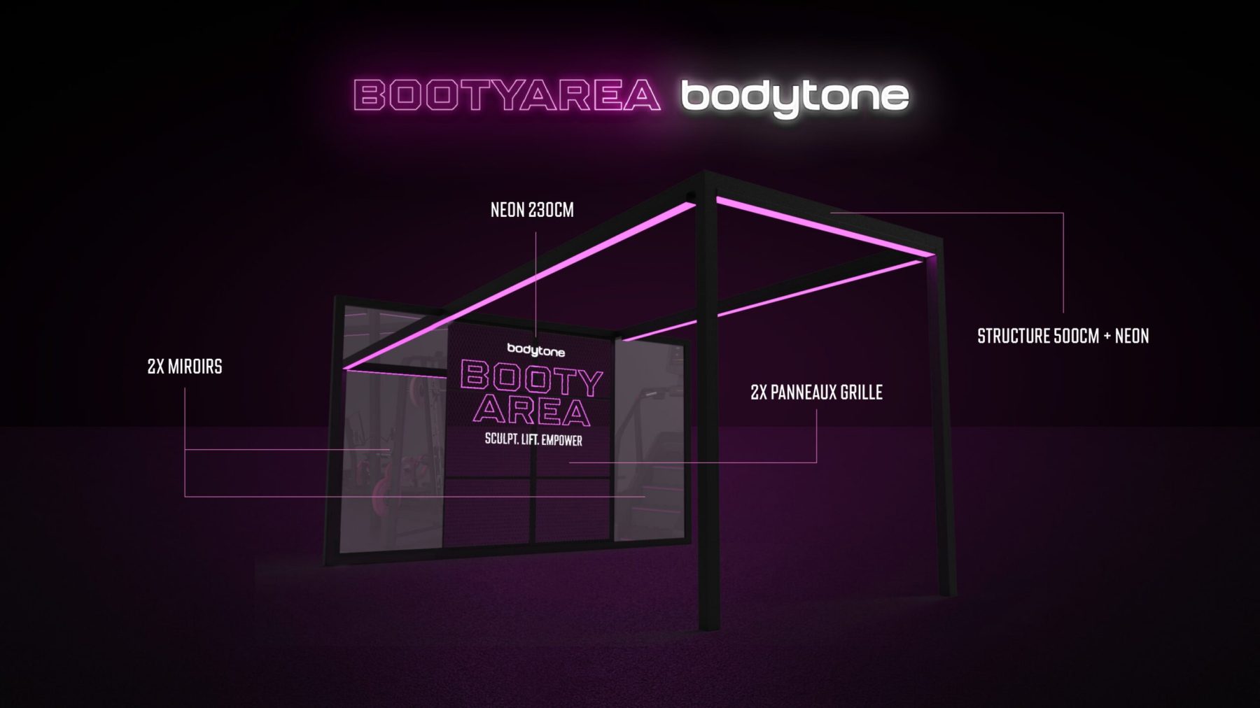Oui, votre pack inclut 2 miroirs roses, 1 néon rose logo Bodytone, ainsi que des modules LED roses et des diffuseurs de lumière.