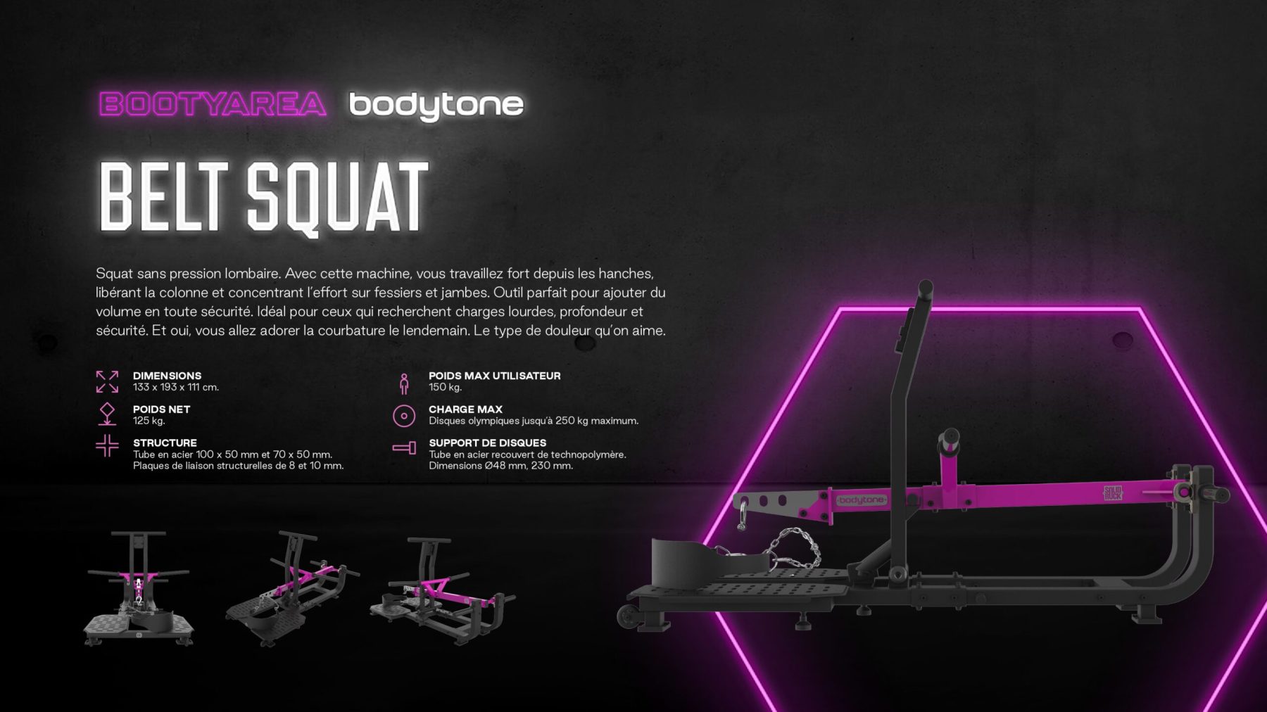 | Belt Squat | 133×193×111 cm | 125 kg | 250 kg |